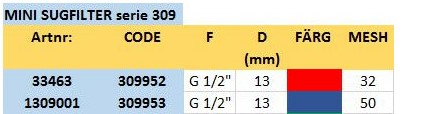 Om filtret inte finns i rätt mesh finns det möjlighet att köpa till filterinsats och byta till önskad mesh 32/50/80/100 enligt andra tabellen.