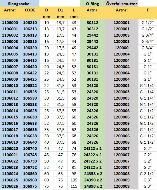 » Slangsockel rak för överfallsmutter