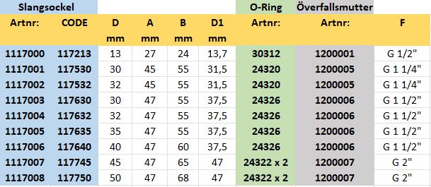 » Slangsockel vinklad (45gr) för överfallsmutter