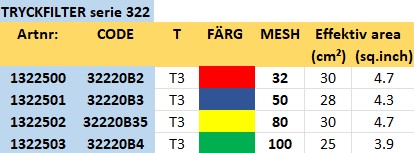 Om filtret inte finns i rätt mesh finns det möjlighet att köpa till filterinsats och byta till önskad mesh 32/50/80/100 enligt andra tabellen.