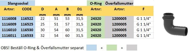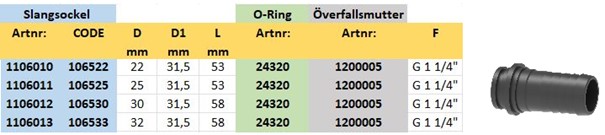 • 1"¼ och 1"½ utv. BSP gängor